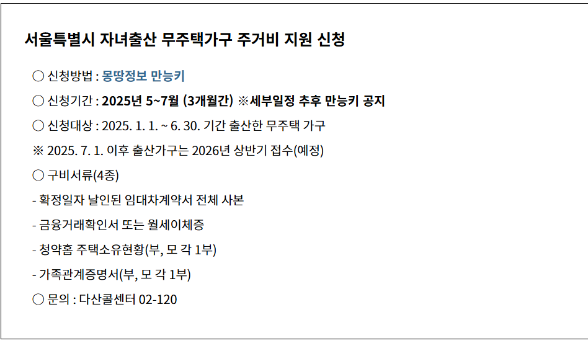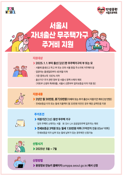 - 서울시에 거주 중인 신혼부부 또는 출산 예정 가정.